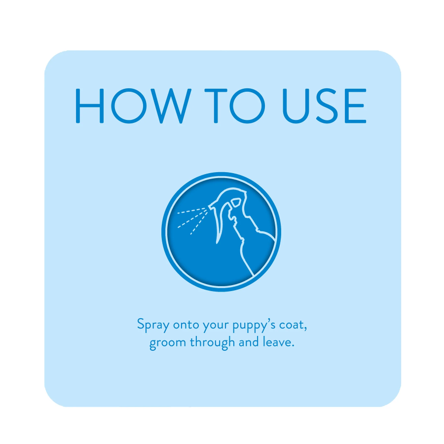 - Ψεκάστε επάνω στο τρίχωμα του κουταβιού, βουρτσίστε καλά και αφήστε το.