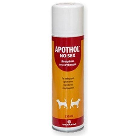 Το APOTHOL NO SEX είναι ένα ασφαλές και μη ερεθιστικό προϊον που εξουδετερώνει την οσμή που εκλύεται από τους θηλυκούς σκύλους με σκοπό να προσελκύσει τους αρσενικούς για ζευγάρωμα. Με την καθημερινή χρήση του APOTHOL NO SEX, κατά την περίοδο του ζευγαρώματος, αποτρέπεται η <<παρενόχληση>> του θηλυκού σας σκύλου από τους αρσενικούς και μπορείτε να αποφεύγετε μια τυχόν ανεπιθύμητη εγκυμοσύνη.