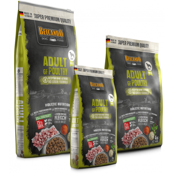 Η θρεπτική εναλλακτική λύση για σκύλους που έχουν αλλεργία στα σιτηρά, τη γλουτένη ή δυσανεξίες. Στο προϊόν αυτό, τα σιτηρά έχουν αντικατασταθεί από τον πολύ υψηλής διατροφικής αξίας Αμάραντο (Superfood). Ο Αμάραντος είναι μία από τις αρχαιότερες γεωργικές καλλιέργειες του ανθρώπου. Χρησιμοποιείτο από τους Ίνκας και τους Αζτέκους καθώς είχαν ανακαλύψει τις άκρως ευεργετικές του ιδιότητες. Σε συνδυασμό με τους ωφέλιμους καρπούς Chia, οι οποίοι ήταν επίσης ένα από τα πρώτα βασικά τρόφιμα και super foods, προσδίδουν μια ιδιαίτερα ισορροπημένη και διατροφικά πλούσια σύνθεση. Με ελεγχόμενες πρωτεΐνες και λιπαρά, η BELCANDO® Adult GF Poultry είναι κατάλληλη για τις ανάγκες σκύλων με κανονική δραστηριότητα.