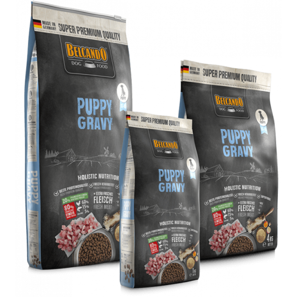 Προσεκτικά επιλεγμένες πρώτες ύλες, πλούσιες σε πουλερικά, ρύζι και αυγό, κάνουν την τροφή για κουτάβια BELCANDO® Puppy Gravy, απόλυτα προσαρμοσμένη, ανεκτή και εύπεπτη. Πολλή ενέργεια για υγιή ανάπτυξη και σημαντικά ανόργανα στοιχεία για τον σχηματισμό των οστών, εξασφαλίζουν ένα ιδανικό ξεκίνημα στην ζωή. Μια νόστιμη σάλτσα δημιουργείται όταν η τροφή αναμειγνύεται με ζεστό νερό, ενθαρρύνοντας το κουτάβι να ξεκινήσει την κατανάλωση ξηράς τροφής. Έτσι καθίσταται ευκολότερος ο απογαλακτισμός και μια ευπρόσδεκτη απόλαυση στη συνέχεια.