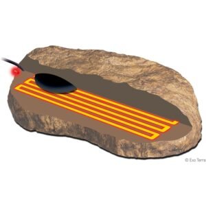 Η ειδική θερμικά αγώγιμη ρητίνη είναι αδιάβροχη, μη τοξική, καθαρίζεται εύκολα και εξασφαλίζει ομοιόμορφη κατανομή θερμότητας. Οι βράχοι θερμότητας με φυσική εμφάνιση διατίθενται σε τρία μεγέθη και ενσωματώνονται εύκολα σε οποιαδήποτε διάταξη terrarium, υγρό ή ξηρό.