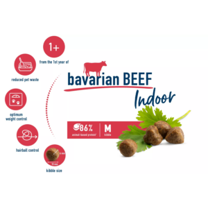 Αυτή η νόστιμη σύνθεση, με πλούσιο βοδινό κρέας Βαυαρίας και πολύτιμο κόλιανδρο και γαϊδουράγκαθο, έχει αναπτυχθεί ειδικά για τις διατροφικές απαιτήσεις των γατών εσωτερικού χώρου. Οι φυσικές ίνες υποστηρίζουν τη μείωση των τριχόμπαλων και η γιούκα βοηθά στην ελαχιστοποίηση της οσμής των κοπράνων.