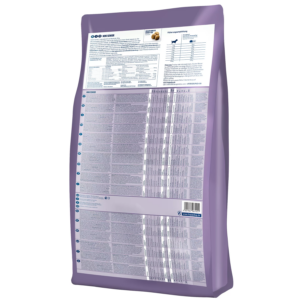 Ακατέργαστη πρωτεΐνη 23%, ακατέργαστο λίπος 10%, ακατέργαστες φυτικές ίνες 3%, ακατέργαστη τέφρα 4,5%, ασβέστιο 1%, φώσφορος 0,8%, νάτριο 0,3%, ωμέγα-6 λιπαρά οξέα 2,8%, ωμέγα-3 λιπαρά οξέα 0,3%