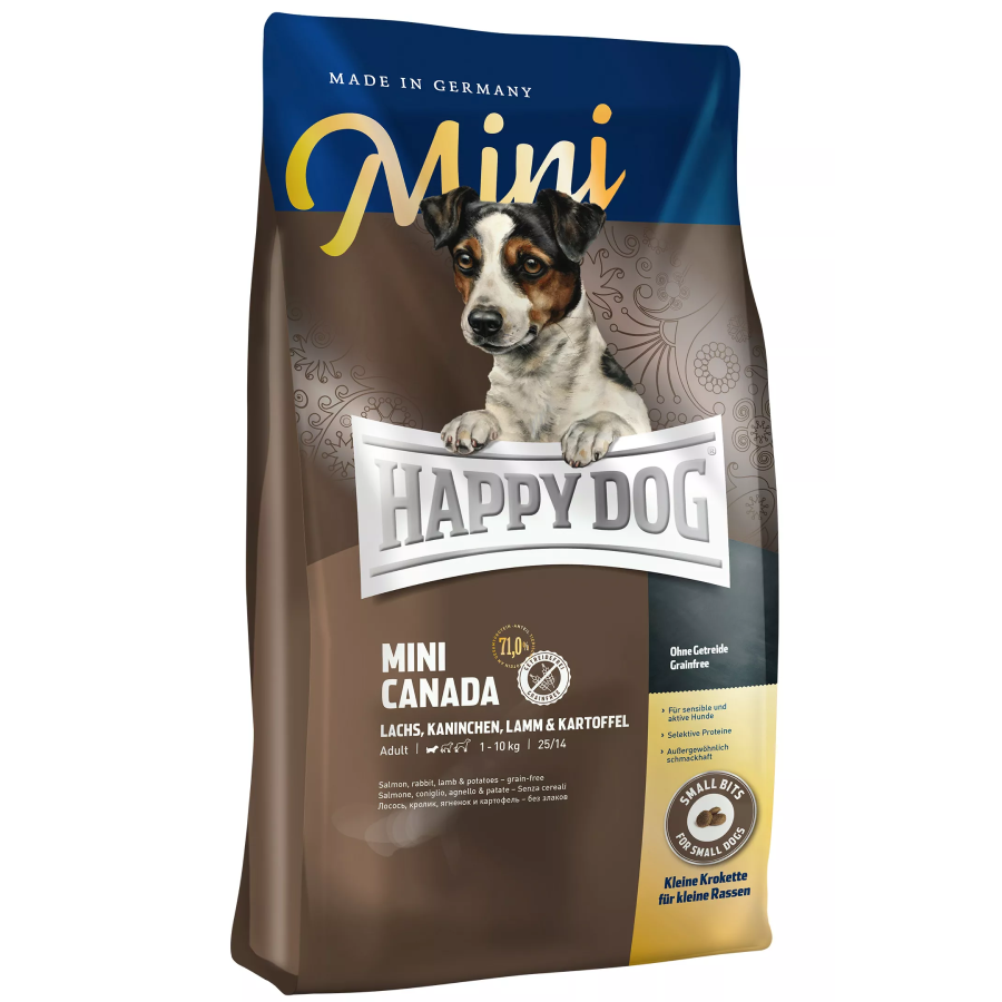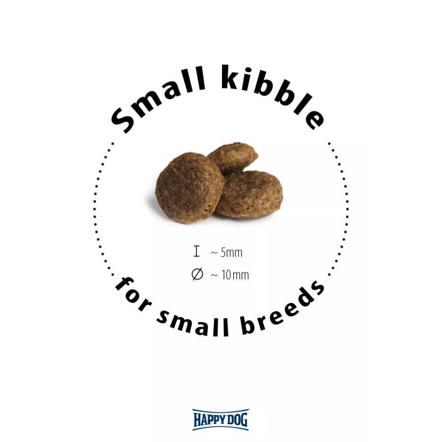Περιποιηθείτε τον απαιτητικό μικρό γκουρμέ σκύλο σας με έναν εκλεκτό συνδυασμό από τον καλύτερο σολομό, νόστιμο κουνέλι και θρεπτικό αρνί που στρογγυλοποιείται με πατάτα χωρίς γλουτένη. Βασισμένα στο μοναδικό Happy Dog Natural Life Concept®, τα μύδια Νέας Ζηλανδίας υποστηρίζουν τις αρθρώσεις και τα πολύτιμα ωμέγα-3 και ωμέγα-6 λιπαρά οξέα από ηλιέλαιο και κραμβέλαιο εξασφαλίζουν ένα γυαλιστερό τρίχωμα. Η νόστιμη σύνθεση χωρίς δημητριακά με ελαφρώς υψηλότερη περιεκτικότητα σε ενέργεια είναι ιδανική για ευαίσθητα ενεργά σκυλιά έως 10 κιλά. Οι πολύ μικρές κροκέτες είναι ιδανικές για τα δόντια σκύλων μικρόσωμων ράτσας.