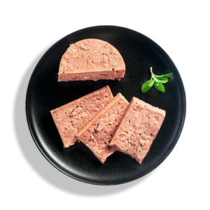 Σύνθεση: Κρέας και ζωικά υποπροϊόντα (65 %; εκ των οποίων Πουλερικά 40 %, Βοδινό 25 %, Ζωμός κρέατος 29,5 %); Αυγά και προϊόντα αυγών (Ολόκληρο αυγό 4 %); Μεταλλικές ουσίες (1 %); Έλαια και λίπη (Λάδι σολωμού 0,5 %)