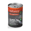 Ένα πλήρες, ισορροπημένο γεύμα με επιλεγμένα φρέσκα μέρη κοτόπουλου 45% και σολομού20%, ζωμό 28,5%, πατάτα 3%, νιφάδες βρώμης 2%, μέταλλα 1%, ηλιέλαιο 0,5%.