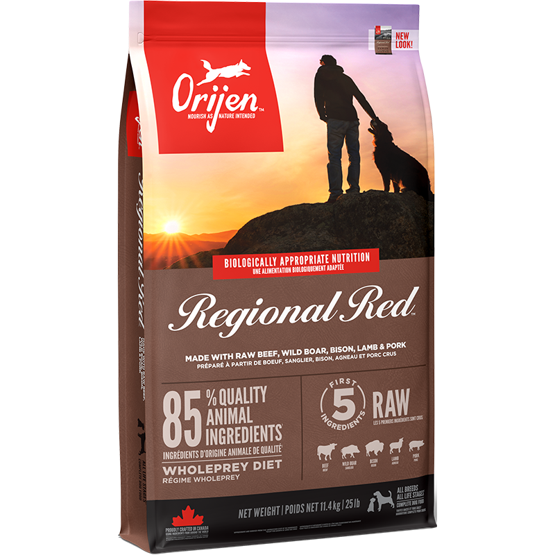 και με ποικιλία ολόκληρων ζωικών συστατικών. Η ORIJEN Regional Red περιλαμβάνει ωμό