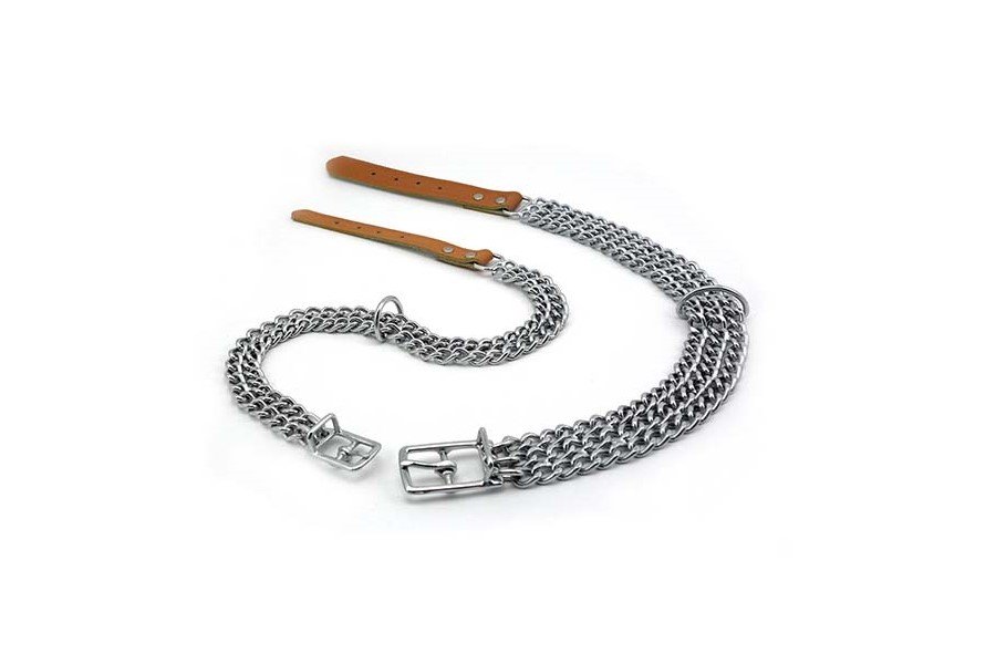 Κολάρο με αλυσίδες (2 σειρές – 3 σειρές) και δερμάτινο κούμπωμα. Δεν χάνει την λάμψη του, είναι υψηλής ποιότητας, ανθεκτικό και αντιμικροβιακό.
