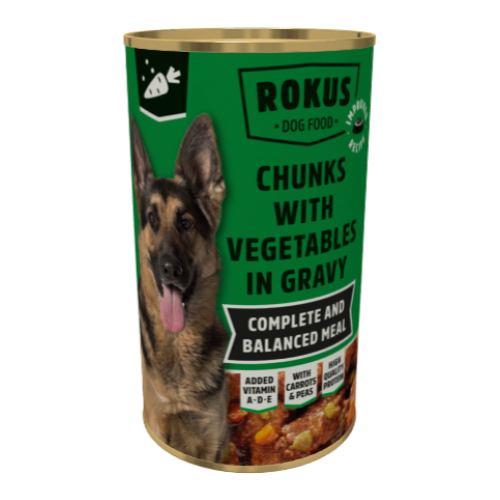 Πλήρης ζωοτροφή για σκύλους σε κομματάκια με λαχανικά.