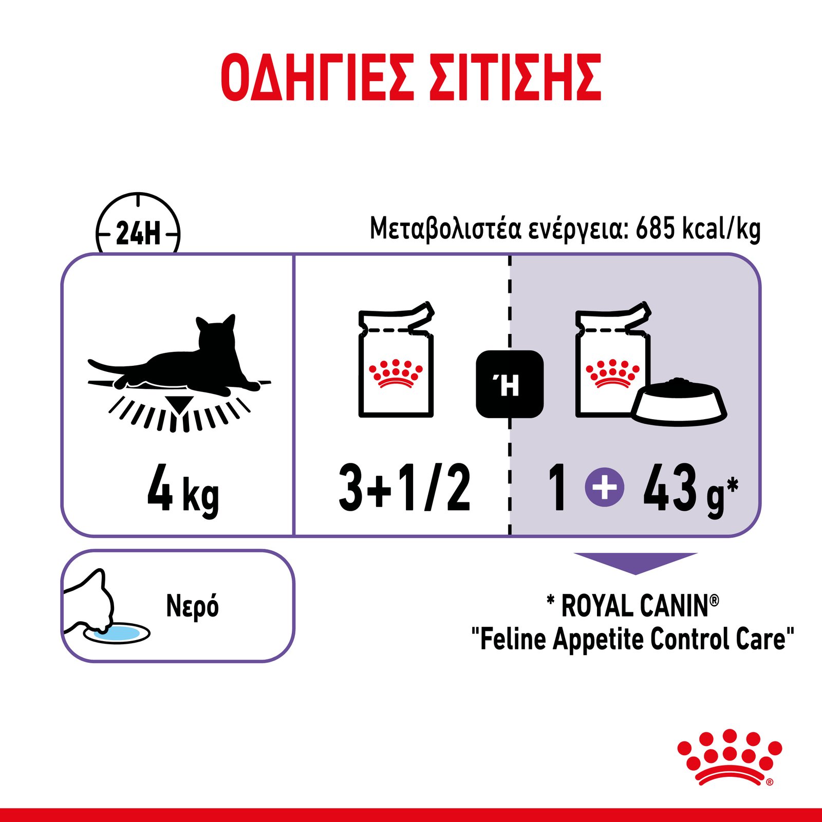 Υγρή τροφή για στειρωμένες γάτες που έχουν ιδανικό βάρος άλλα δεν ικανοποιούνται πλήρως από την ημερήσια ποσότητα τροφής τους και γίνονται απαιτητικές.