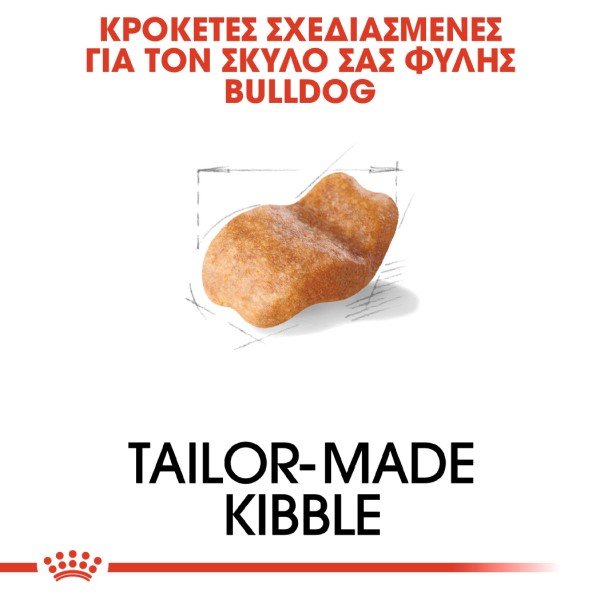 Μια κροκέτα αποκλειστικά σχεδιασμένη ώστε να διευκολύνει τη σύλληψη της τροφής από το Bulldog αλλά και να ενθαρρύνει τη μάσηση.