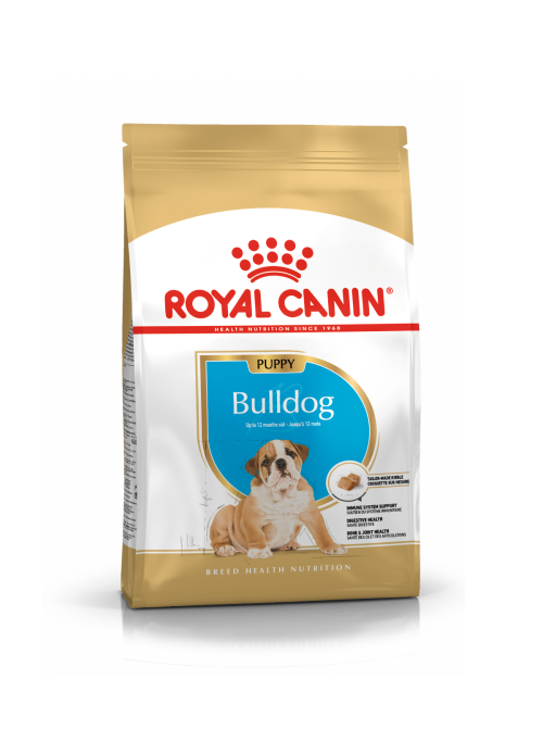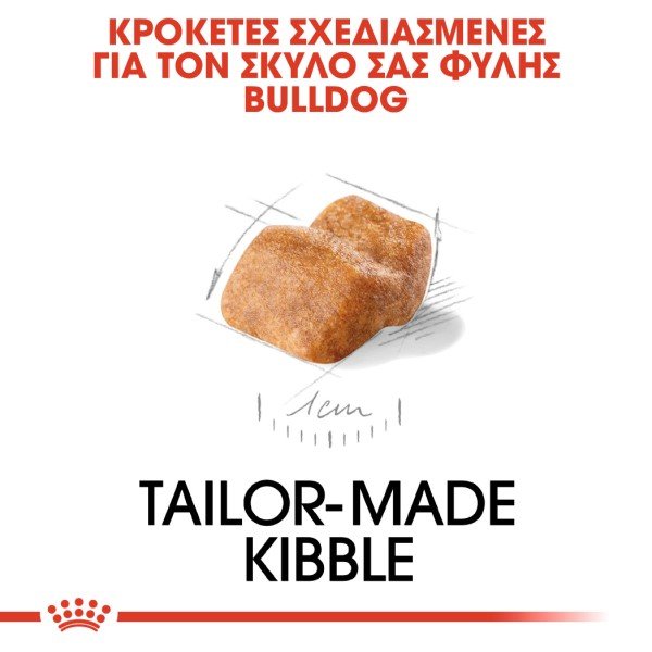 Μια κροκέτα αποκλειστικά σχεδιασμένη ώστε να διευκολύνει τη σύλληψη της τροφής από το κουτάβι Bulldog αλλά και να ενθαρρύνει τη μάσηση.