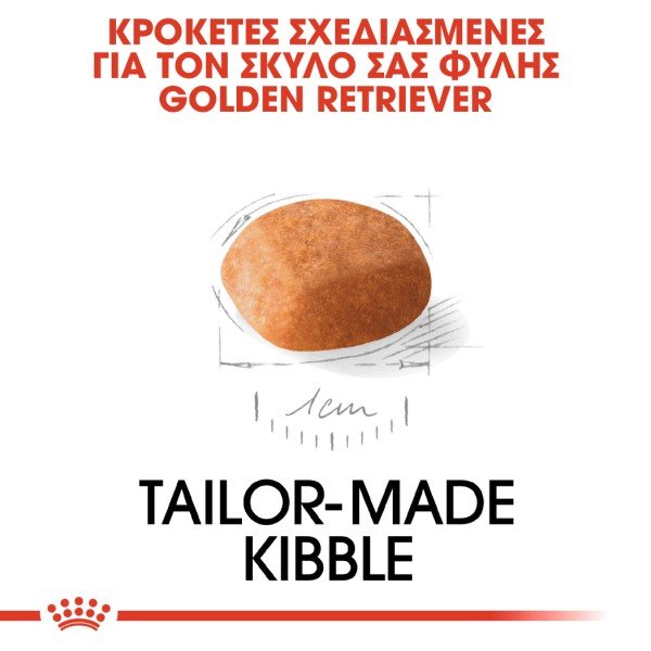 Το σχήμα, μέγεθος, υφή και η φόρμουλα της κροκέτας είναι προσαρμοσμένα στο κουτάβι Golden Retriever.