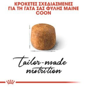Η ξηρά τροφή Royal Canin Maine Coon Adult διαμορφώθηκε αποκλειστικά βάσει των αναγκών γατών της φυλής Μέιν Κουν (ηλικίας άνω των 15 μηνών):