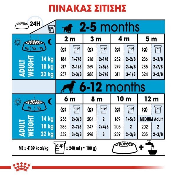 Ανταποκρίνεται στις υψηλές ενεργειακές ανάγκες των κουταβιών μεσαίου μεγέθους που έχουν μια σύντομη περίοδο ανάπτυξης.