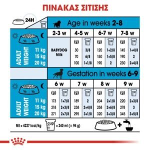 Διατροφικό προφίλ που είναι προσαρμοσμένο στις υψηλές ανάγκες της μητέρας σε ενέργεια κατά το τέλος της κύησης και κατά τη γαλουχία.