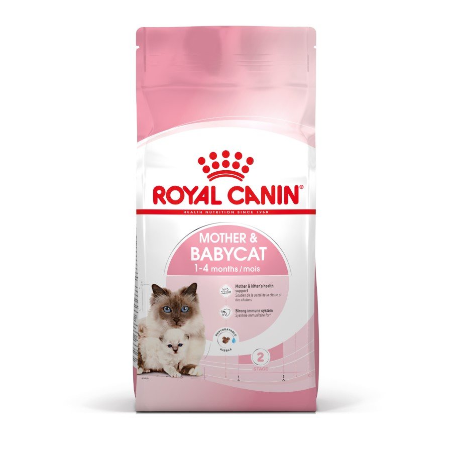 Η πλήρης τροφή Royal Canin Mother & Babycat είναι ιδανικά προσαρμοσμένη στις ιδιαίτερες διατροφικές ανάγκες της μικρής γάτας από τον 1ο έως τον 4ο μήνα: