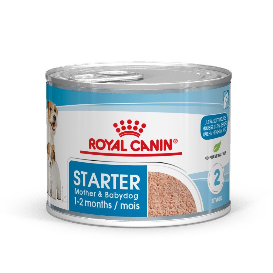 Η Royal Canin Starter Mousse Mother & Babydog είναι ειδικά προσαρμοσμένη στις διατροφικές ανάγκες της σκύλας κατά την κύηση ή γαλουχία και των κουταβιών ηλικίας έως 2 μηνών.