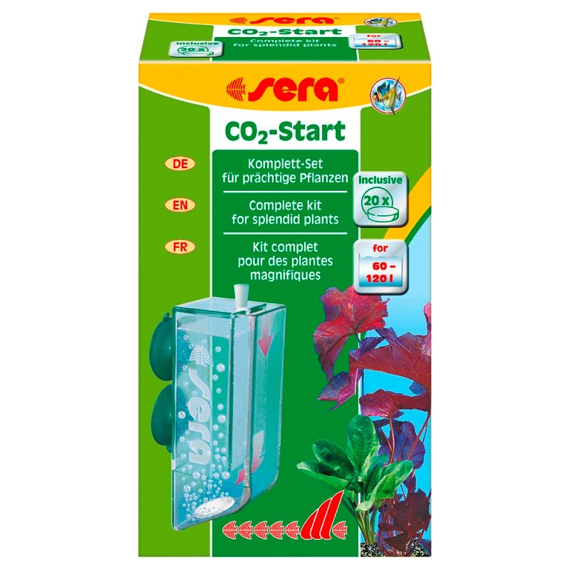 Το σύστημα λιπάσματος sera CO2-Start είναι εύκολο στην εγκατάσταση και λειτουργία. Είναι ιδανικό για τα πολύ διαδεδομένα και δημοφιλή μικρότερα ενυδρεία έως περίπου. 120 λίτρα (31,8 γαλλ. ΗΠΑ). Το sera CO2-Start αποτελείται από έναν οπτικά διακριτικό αντιδραστήρα διάχυσης του sera CO2 και τον αντίστοιχο sera CO2-Tabs plus.
