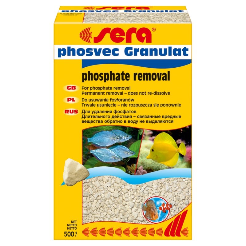 Το σημαντικό θρεπτικό συστατικό των φυτών, ο φώσφορος, είναι απαραίτητος μόνο σε μικρές ποσότητες. Υπερβολική περιεκτικότητα επιφέρει προβλήματα άλγης. Το sera phosvec Granulat απορροφά τον φώσφορο εύκολα και με ασφάλεια, και με μακροχρόνιο αποτέλεσμα.