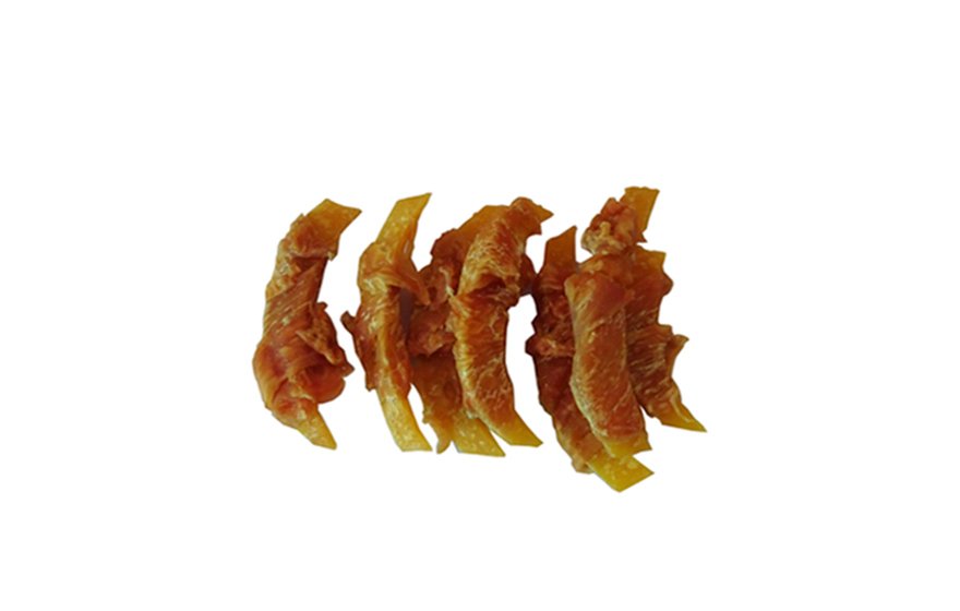 Μαλακά κομμάτια μάνγκο τυλιγμένα σε λαχταριστό φιλέτο κοτόπουλο. Το μάνγκο είναι μια εξαιρετική πηγή βιταμίνης Α και φλαβονοειδών, οι αντιοξειδωτικές του ιδιότητες βοηθούν στην καλή όραση του σκύλου.