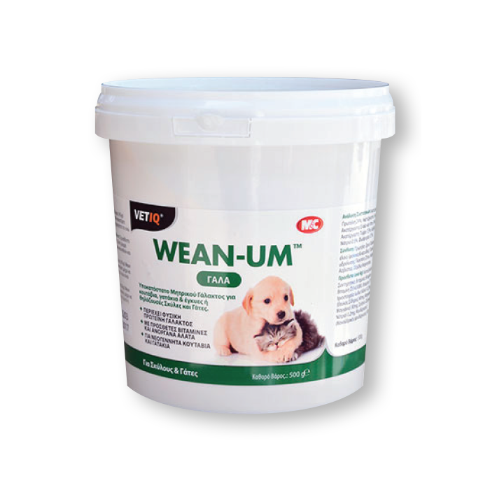 Το Wean Um είναι ένα πλήρες υποκατάστατο γάλακτος για σκυλιά, κουτάβια, γάτες & γατάκια. Είναι εμπλουτισμένο με τις απαραίτητες βιταμίνες και ανόργανα συστατικά για να εξασφαλίζεται η σωστή ανάπτυξη για το καλύτερο ξεκίνημα τους.